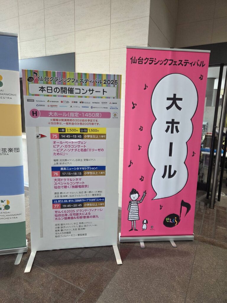 今日は、仙台クラシックフェスティバル、通称“せんくら”のピアノ・ガラコンサートを聴きに行ってきました。